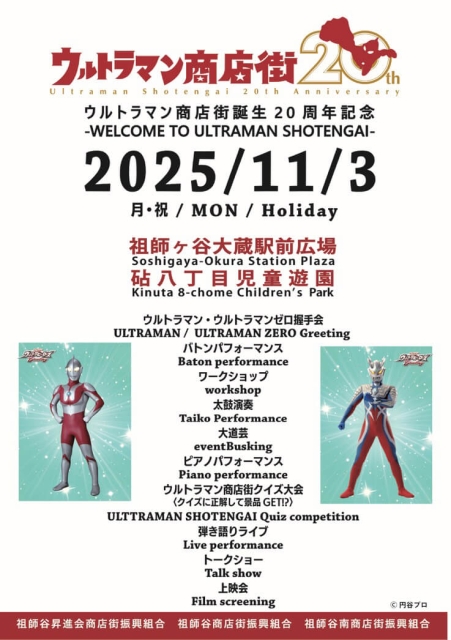 11/3(月・祝)は、ウルトラマン商店街誕生20周年記念イベントが2ヶ所で開催されます。…